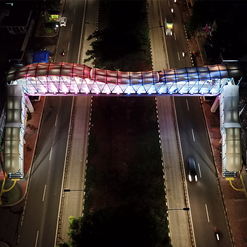 - Pembangunan Trotoar Complete Street di dalamnya terdapat saluran (u-ditch / box culvert), box utilitas, halte, way finding, jembatan dan sebagainya.